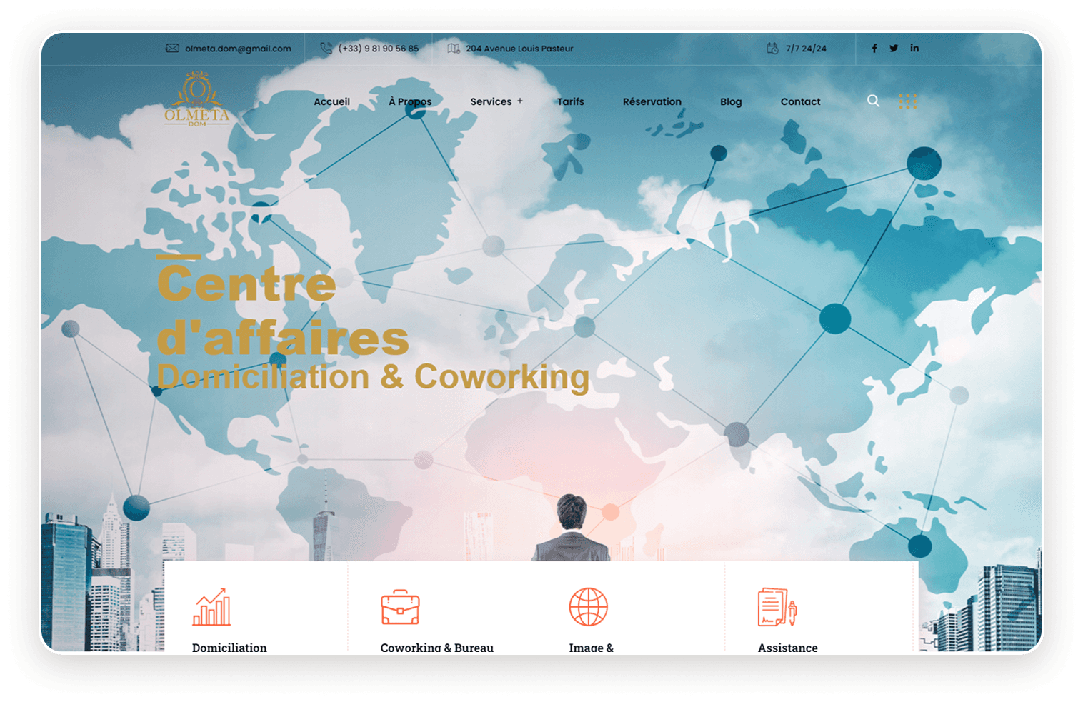 Réalisation d'un site vitrine avec prise de rendez-vous et domiciliation en ligne pour une entreprise proposant des services de domiciliation, coworking et bien d'autre..